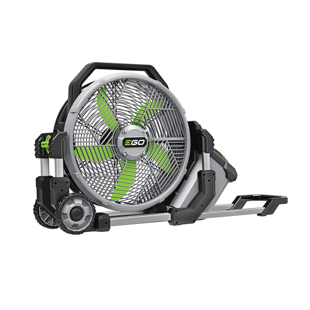 Ventilátor má průměr 45 cm a vzhledem k jeho hmotnosti 10,4kg je zabudován do transportního dvoukolového podvozku s teleskopickou rukojetí. Lze si zvolit rychlost vzduchu z 5-ti možností plus funkce "turbo". Ve středu ventilátoru se nachází 4 vodní trysky, do kterých v případě nutnosti podává vodu integrované vodní čerpadlo. Vytváří se tak vodní mlhovina, jejíž intenzitu zle řídit kromě rychlosti ventilátoru i dvěma režimy výkonu vodního čerpadla. Vytvoříte si tak optimální prostředí. Maximální průtok vzduchu ventilátorem je 7.000 m3/hod. při max. rychlosti vzduchu 10,3 m/s. Jen pro představu, velikost horkovzdušného balónu pro pilota se 4 pasažéry je cca 3.000 m3. To znamená, že tímto ventilátorem byste naplnili za hodinu minimálně 2 takto velké horkovzdušné balóny. Slušný objem, že? A jak dlouho vydrží baterie? Samozřejmě záleží na kapacitě baterie, ale s baterií EGO 5Ah vydží ventilátor v režimu 1 běžet až 60 hodin nepřetržitě.