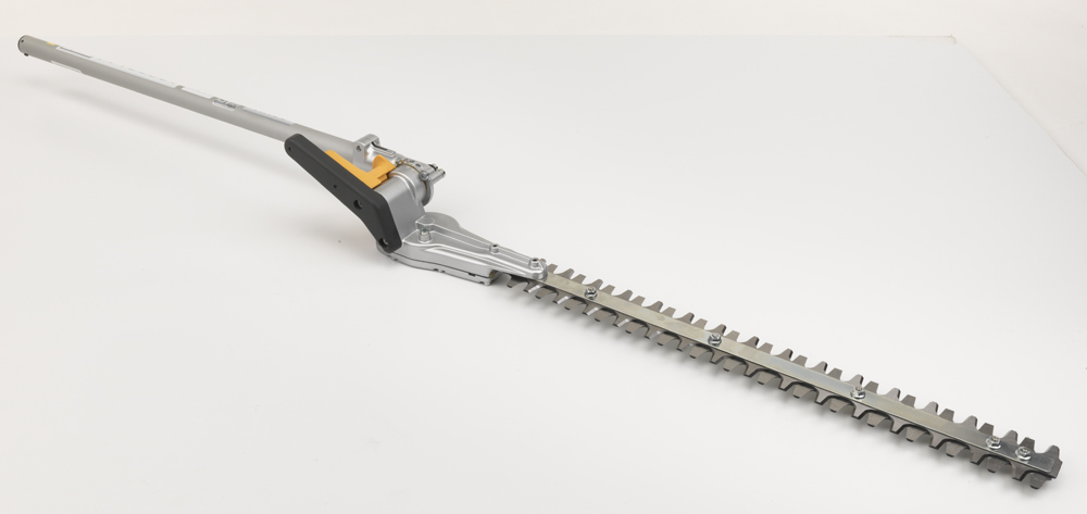 Pro zarovnávání a zastřihování živých plotů vysokého vzrůstu je k dispozici dlouhý nástavec s nůžkami na živý plot. V tomto provedení s nástavcem hnací hřídele o délce 60 cm. Díky originálnímu systému naklápění, lze jednoduše změnit pracovní úhel lišty dlouhé 55 cm. Zarovnáte tak výšku plotu bez potřeby žebříku či podobných zařízení při bezpečném a stabilním postoji na zemi. Břity tohoto nástroje jsou samoostřící a jsou chráněné proti vylomení.